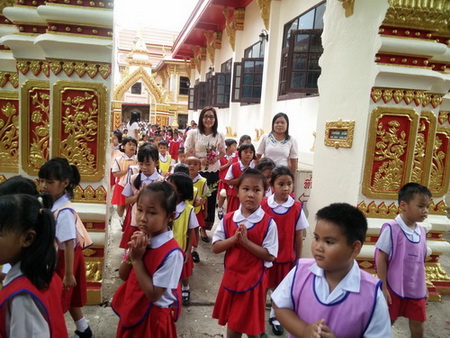 ผู้บริหาร ครู และนักเรียน ร่วมเวียนเทียนเนื่องในวันวิสาขบูชา
