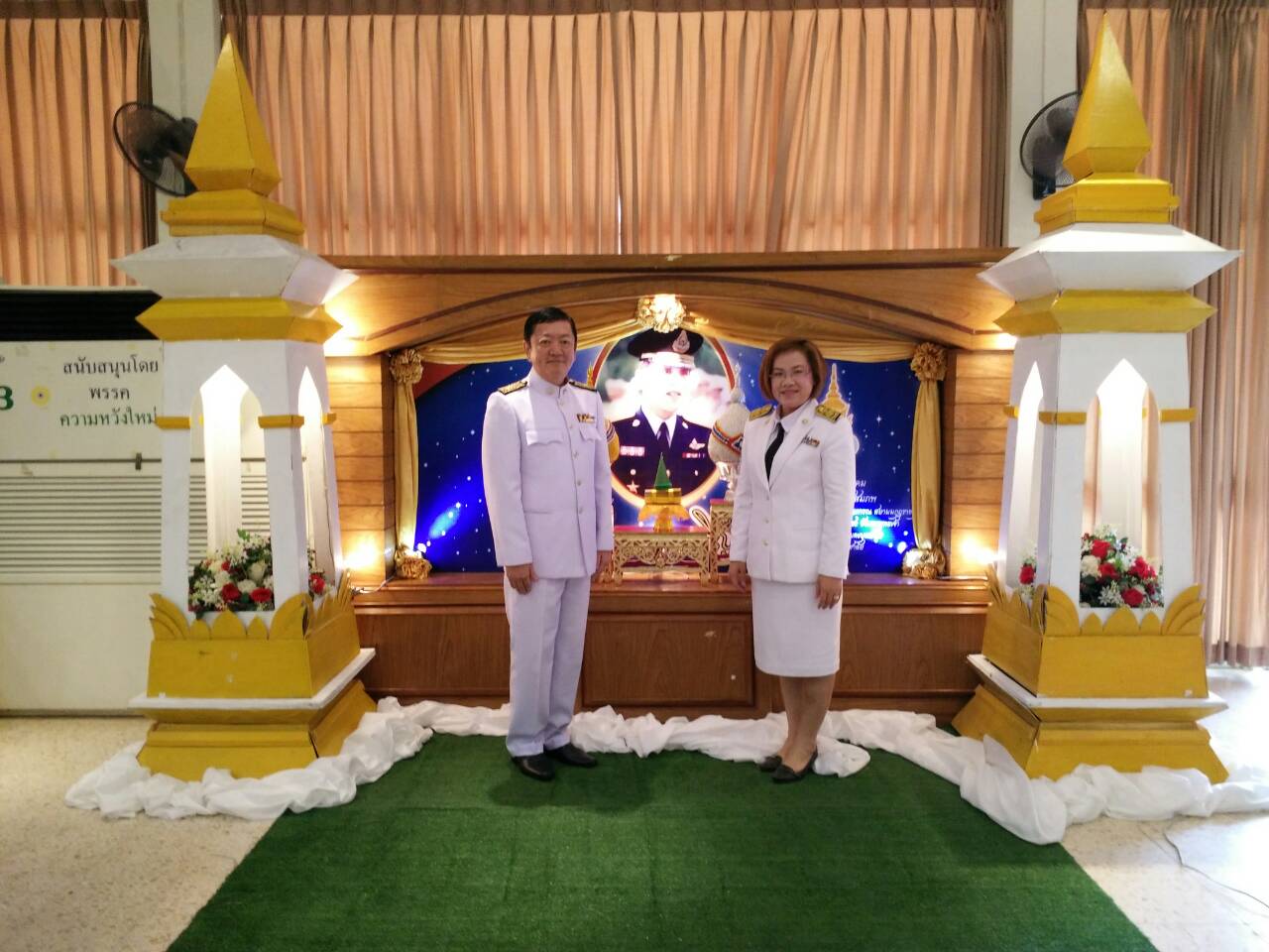 นายกเทศมนตรีและผู้อำนวยการศึกษา ร่วมพิธีในภาคเช้า ณ.ศาลาประชาคมยงใจยุทธ |