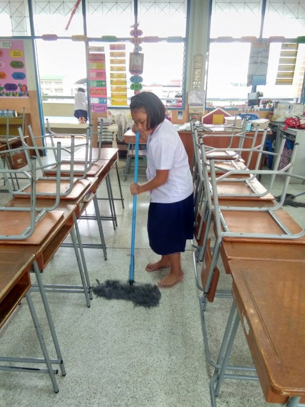 ผู้บริหาร คุณครู นักเรียนและบุคลากรภายในโรงเรียนร่วมจัดกิจกรรมตามนโยบาย5ส