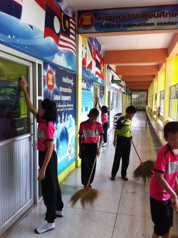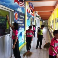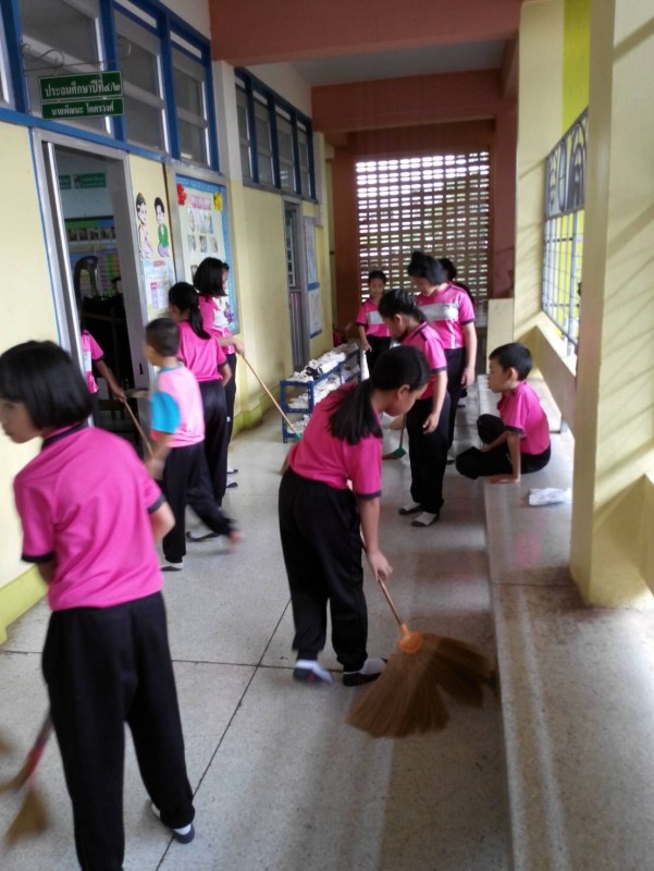 ผู้บริหาร คุณครู นักเรียนและบุคลากรภายในโรงเรียนร่วมจัดกิจกรรมตามนโยบาย5ส