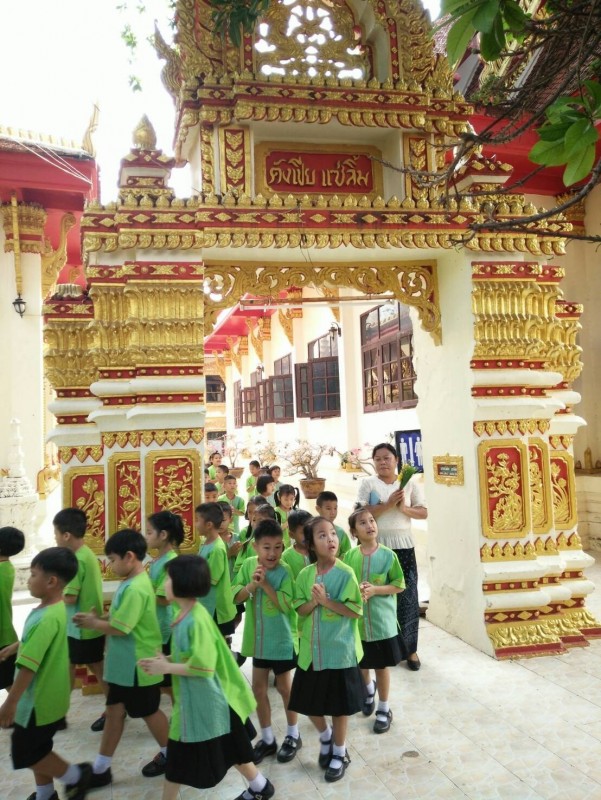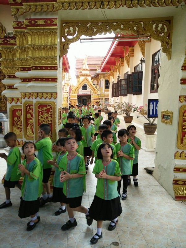 นำเด็กนักเรียนปฐมวัยทำบุญที่วัดโอกาสเนื่องในวันมาฆบูชา