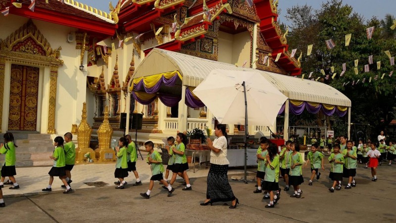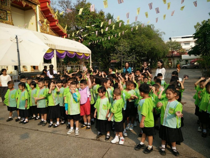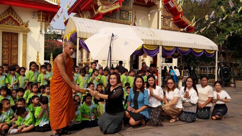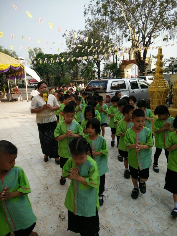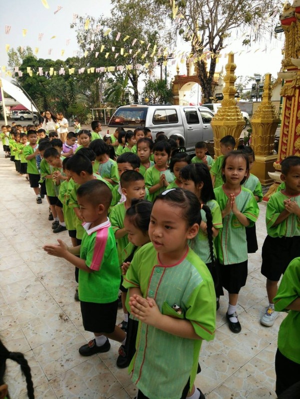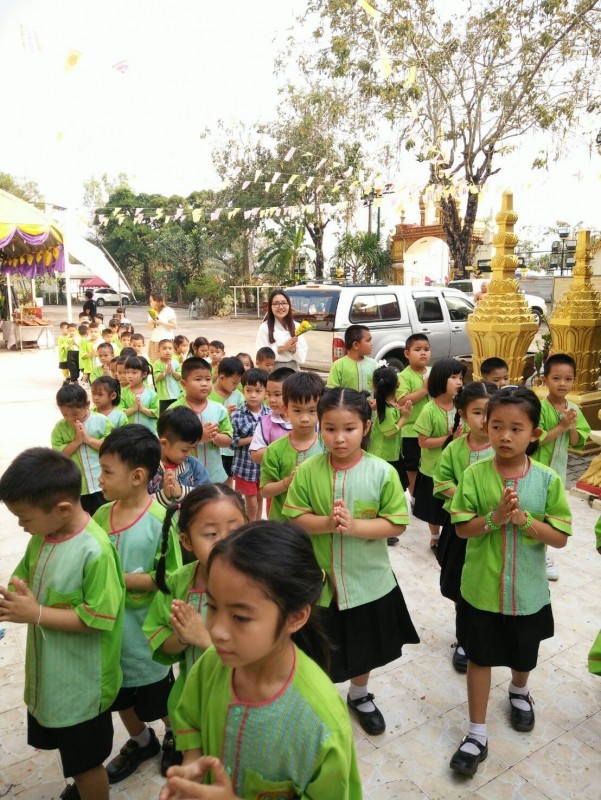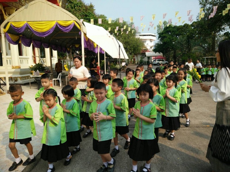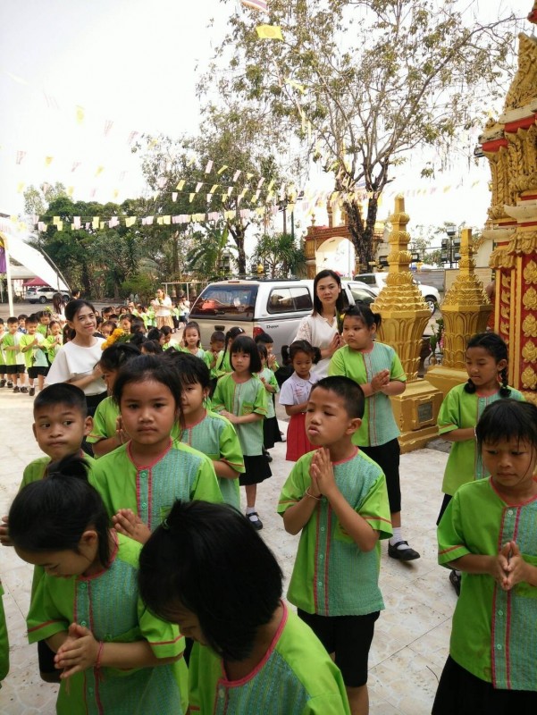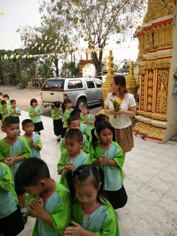 นำเด็กนักเรียนปฐมวัยทำบุญที่วัดโอกาสเนื่องในวันมาฆบูชา