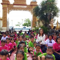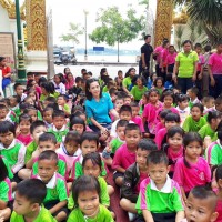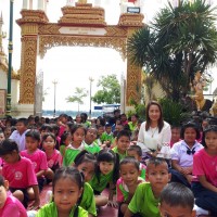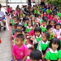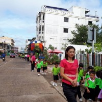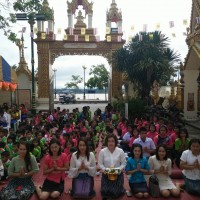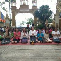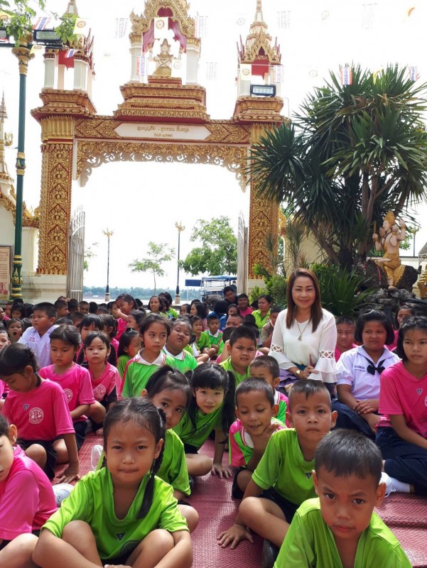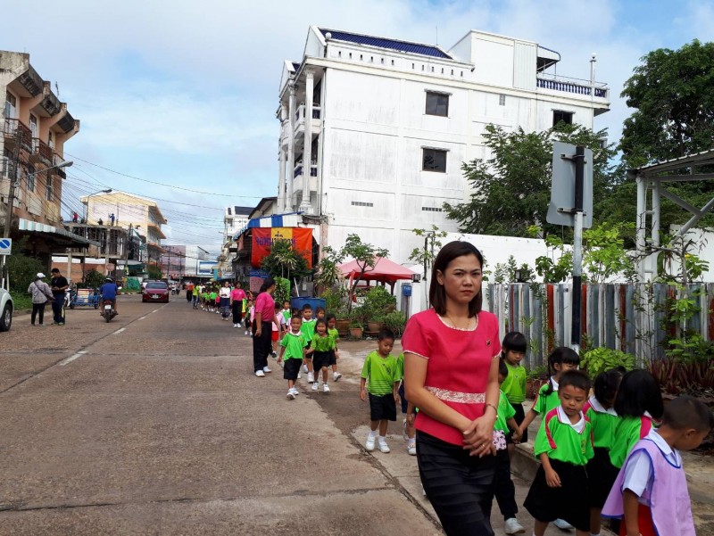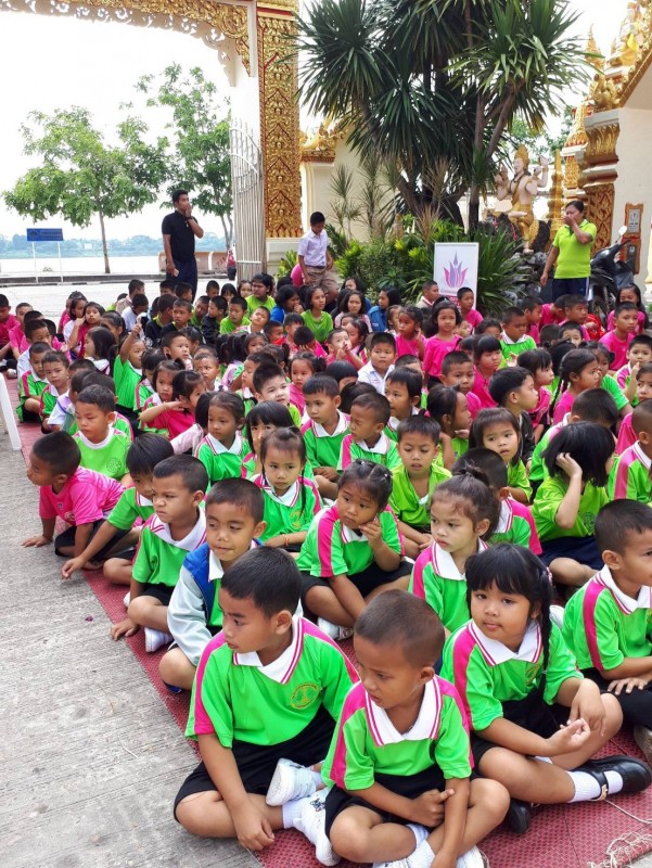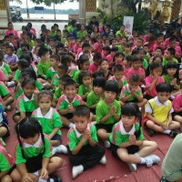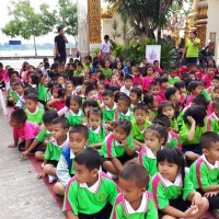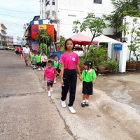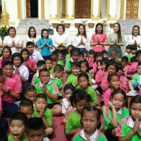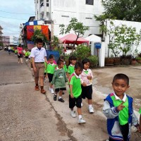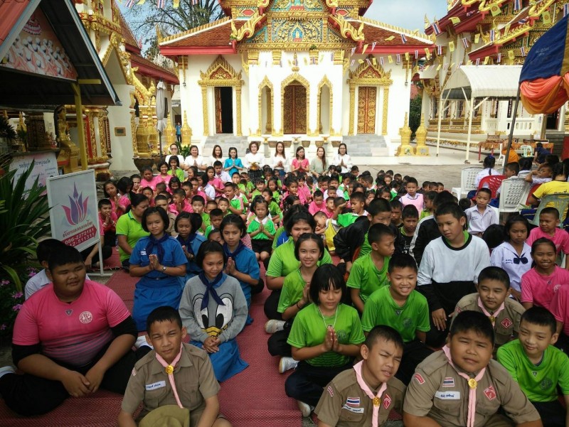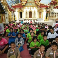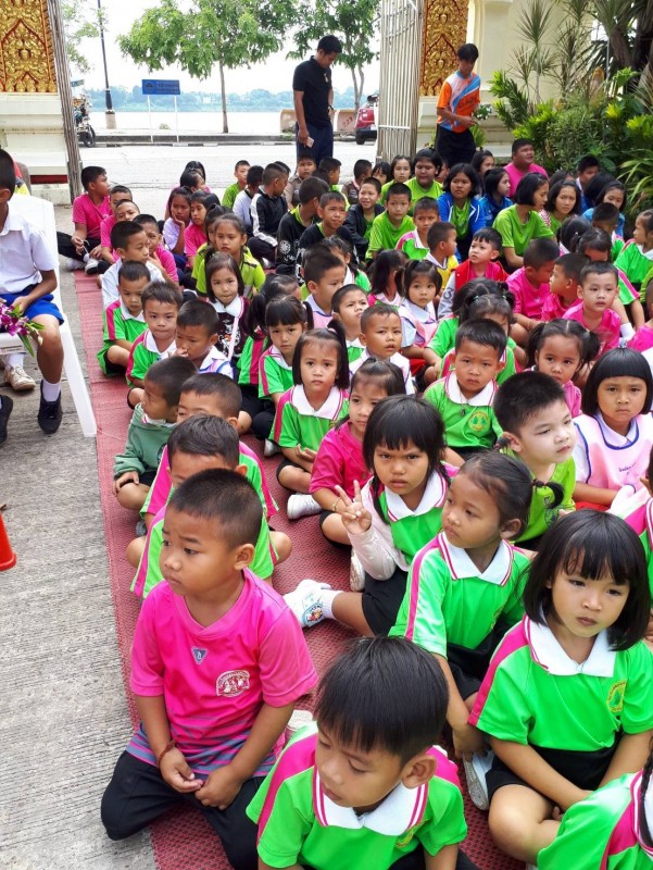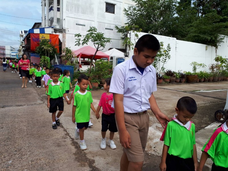 นำนักเรียนระดับชั้นปฐมวัยและนักเรียนชั้นประถมศึกษาปีที่ ๖ เวียนเทียนที่วัดโอกาสเนื่องในวันวิสาขบูขา