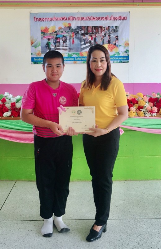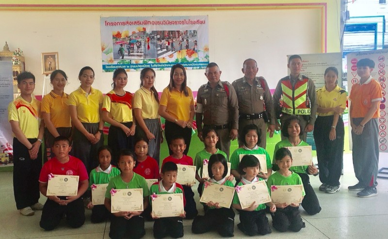 จัดโครงการส่งเสริมฝึกอบรมวินัยจราจรในโรงเรียน เมื่อวันที่ ๑๑ กรกฎาคม พ.ศ.๒๕๖๑