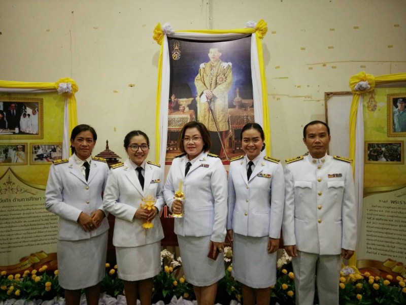 ผู้บริหารและคณะครูร่วมกิจกรรมเฉลิมพระเกียรติเนื่องในวันเฉลิมพระชนมพรรษา ๖๖ พรรษา เมื่อ วันเสาร์ ที่