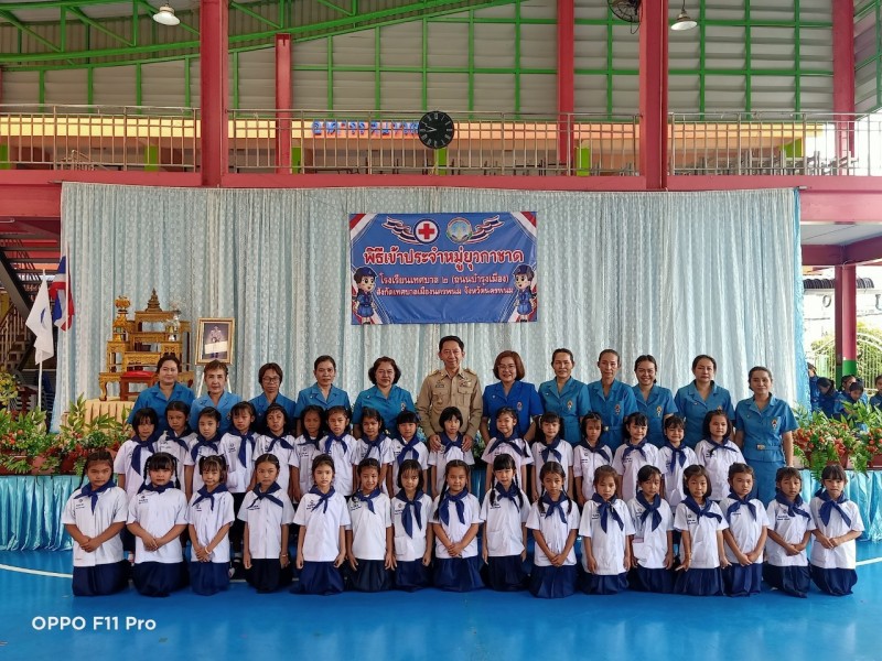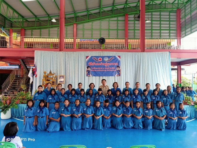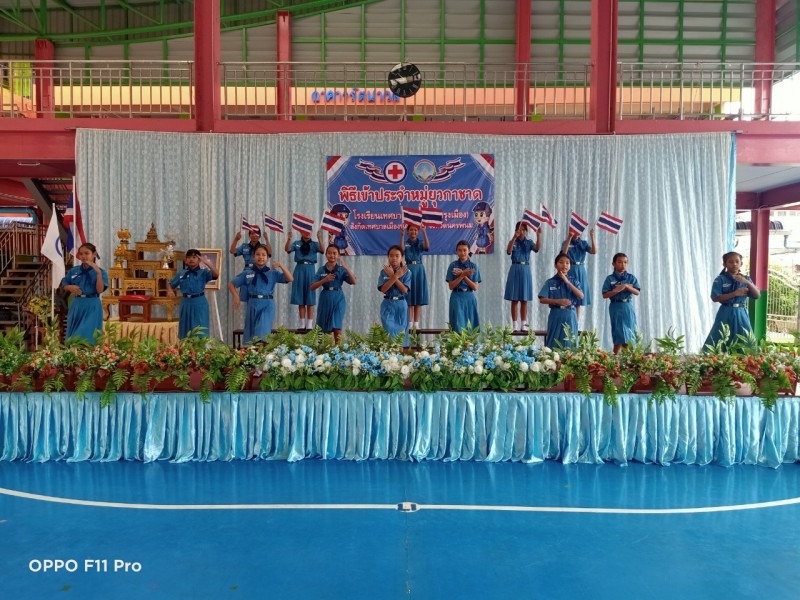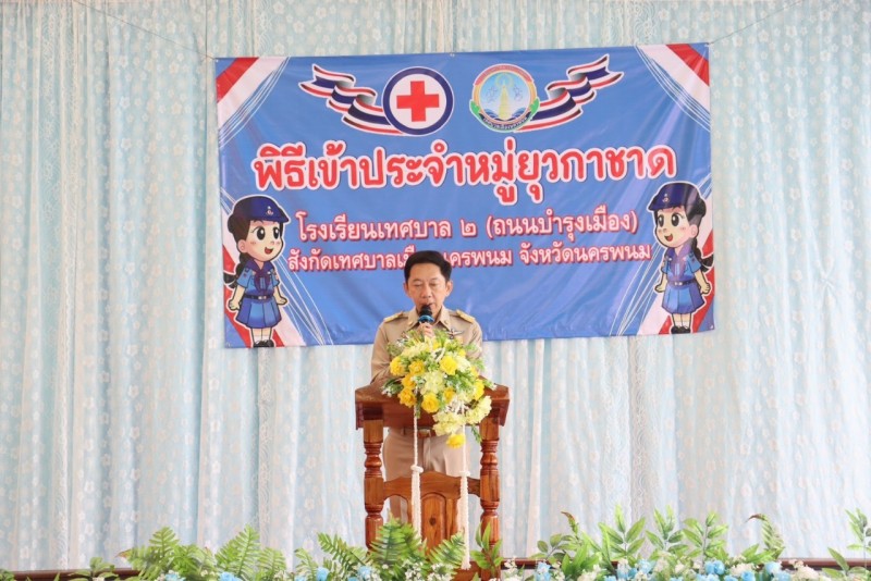 ร่วมกิจกรรมพิธีเข้าประจำหมู่ยุวกาชาด โดยมี นายวัฒนศักดิ์ เจียวิริยบุญญา รองนายกเทศมนตรีเมืองนครพนม ให้เกียรติเป็นประธานในพิธี