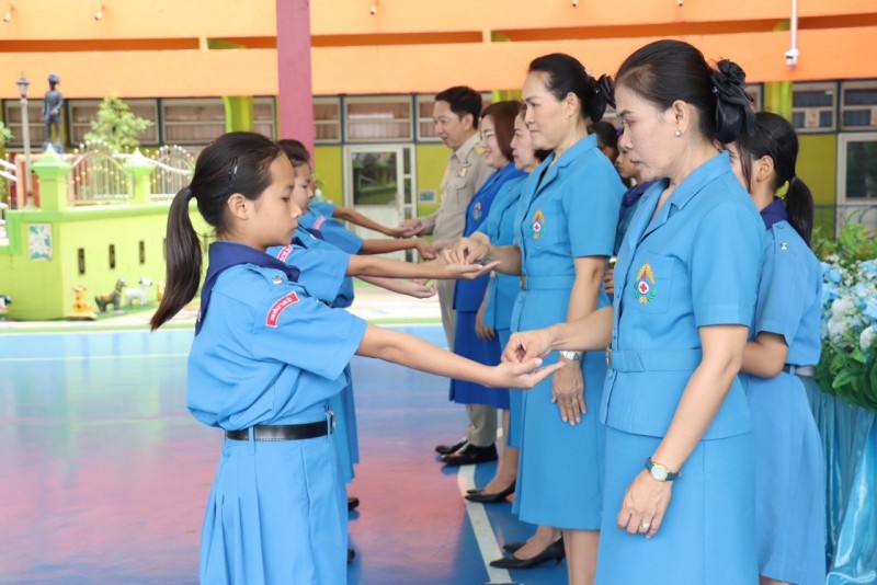 พิธีหมอบเข็มและเข้าประจำหมู่ยุวกาชาดโรงเรียนเทศบาล 2 ประจำปีการศึกษา 2567