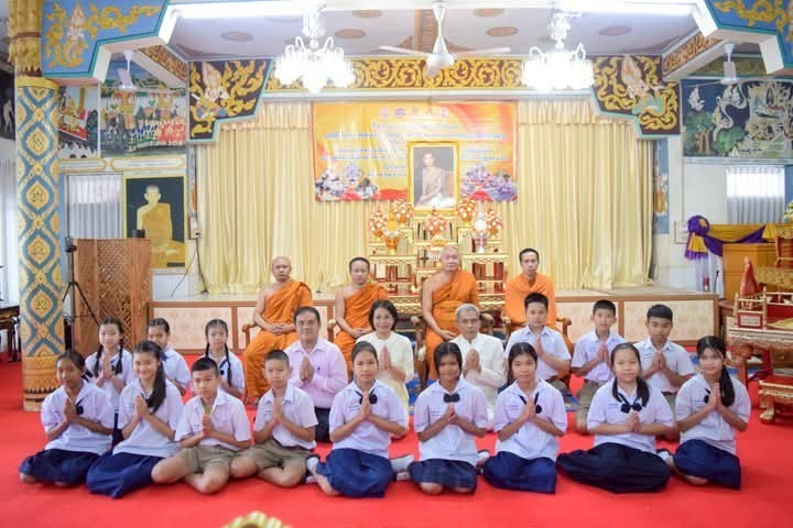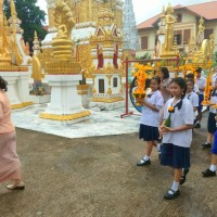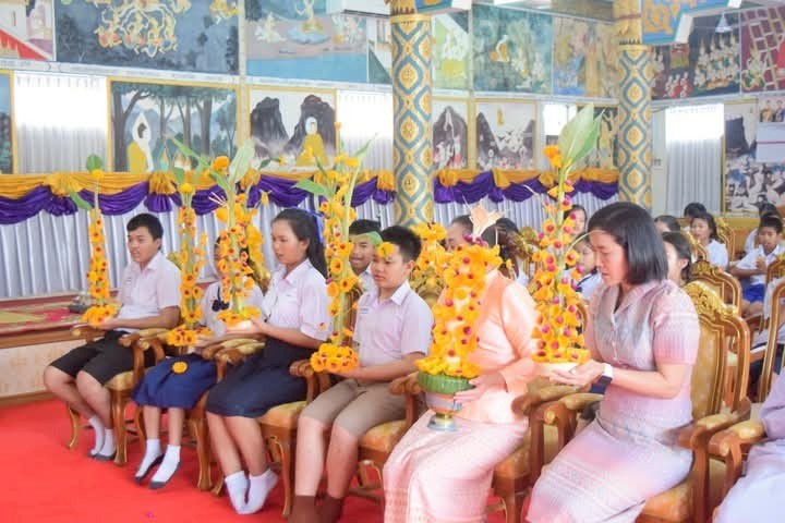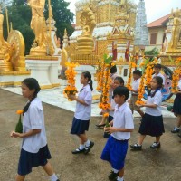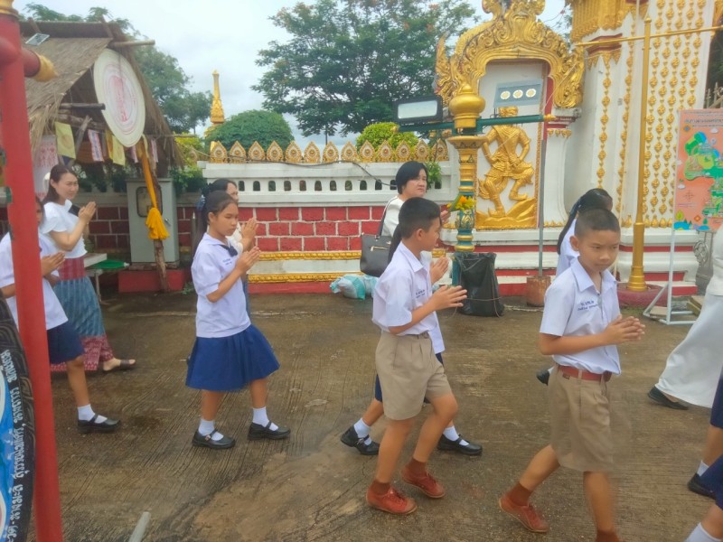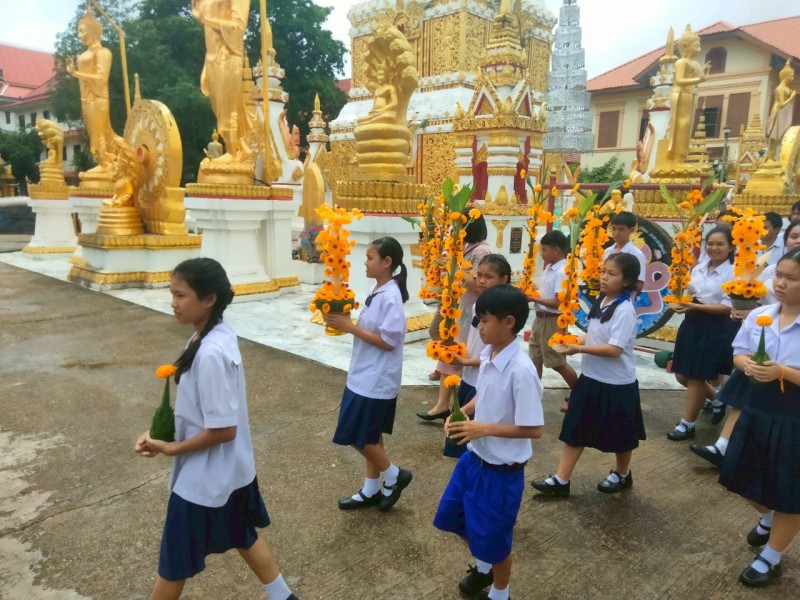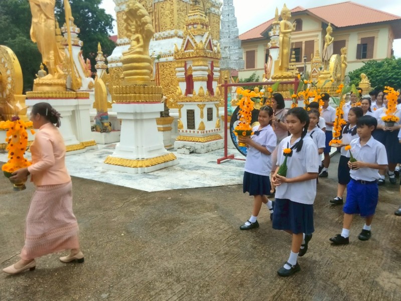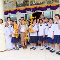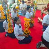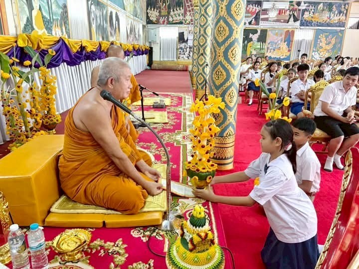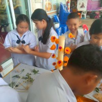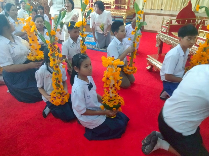 คณะครูและนักเรียนร่วมสร้างต้นเทียนเพื่อถวายพระ