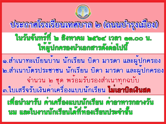 รับค่าเครื่องแบบนักเรียน รับนม ค่าอาหารกลางวัน และใบงานนักเรียน